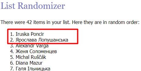 Отже, результати розіграшу серед тих, хто виконав усі умови розіграшу в Фейсбуці, такі: