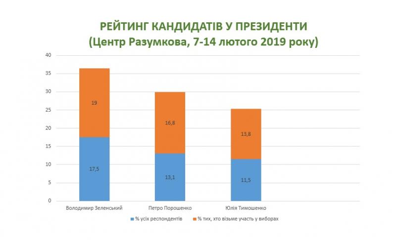 Зауважимо, що за підсумками опитування Центру Разумкова, яке було проведене протягом 7-14 лютого 2019 року, у списку з 42-х кандидатів 30 мають підтримку менше 1%, зокрема, у 14-ти – це 0,0%.