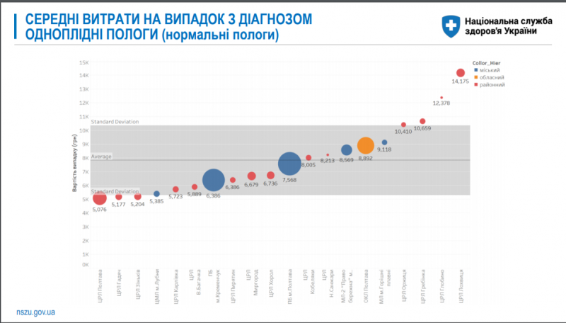 При нормальних пологах мами перебували у закладах, де багато пацієнток, у середньому 5 днів, а де мало – аж до 12, витрати на одну породіллю в середньому складали близько 7,5 тисяч гривень, а в закладах із невеликою кількістю пологів – удвічі більше.