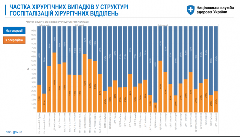 Так, начальник управління комунікацій Національної служби здоров’я України Тeтяна Бойко у своїй презентації графічно представила чітку залежність щодо стаціонарних закладів: як тільки пацієнтів було менше – зростала кількість днів, які вони перебували у стаціонарі. В операційних відділеннях окремих лікарень недужі, яких лікували без оперативного втручання, складали до 75-80% від загальної кількості пацієнтів.