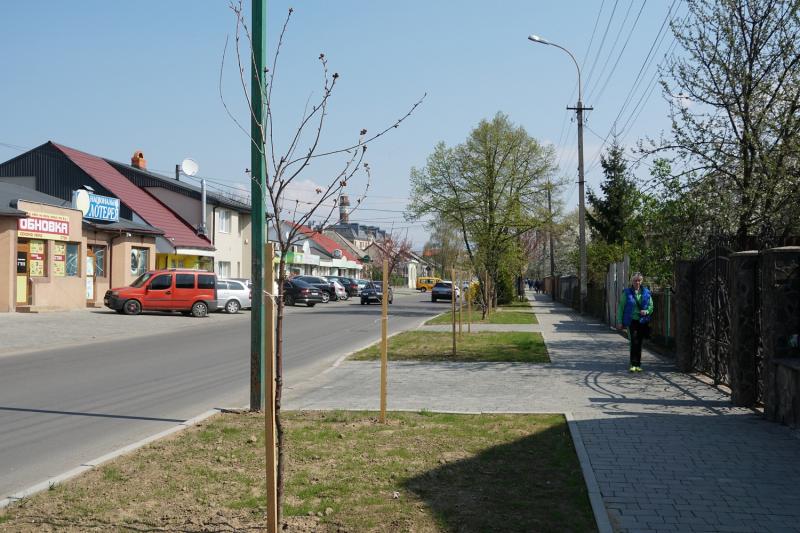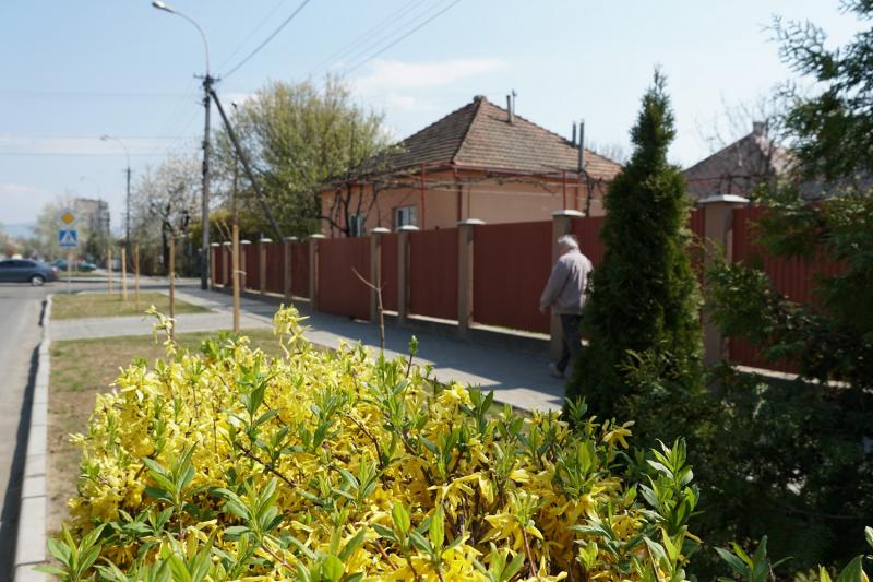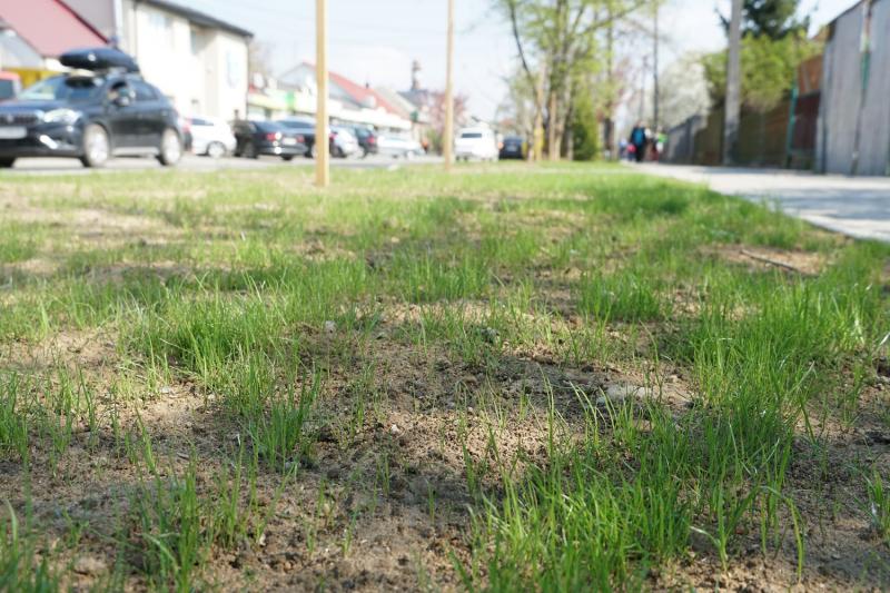 Молоді деревцята сакури, які нещодавно висадили на вулиці Марії Заньковецької в Ужгороді, уже зеленіють і вкриваються першими суцвіттями. А на впорядкованих клумбах уже пробивається молода посіяна трава.