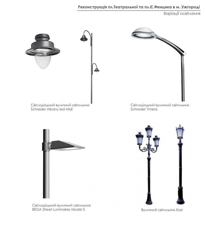 Буде облаштоване нове освітлення: пропонуються окремо стоячі ліхтарі, а де звуження площі - ліхтарі на кронштейнах на будинках. Проектанти підібрали на вибір кілька видів світильників: як сучасних, так у ретро-стилі, з цим потрібно визначитися.