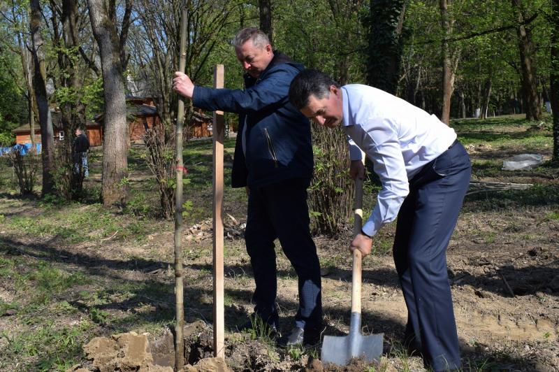 До висадки молодих дерев долучилися міський голова Ужгорода Богдан Андріїв, його заступник Ігор Фартушок, головний архітектор міста Олег Боршовський, депутати Ужгородської міської ради Анатолій Ковальський (директор КП “Боздоський парк”) та Володимир Химинець, представники Ротарі-клубів “Ужгород” і “Ужгород-Скала”, небайдужі ужгородці, які підтримали цю ініціативу.