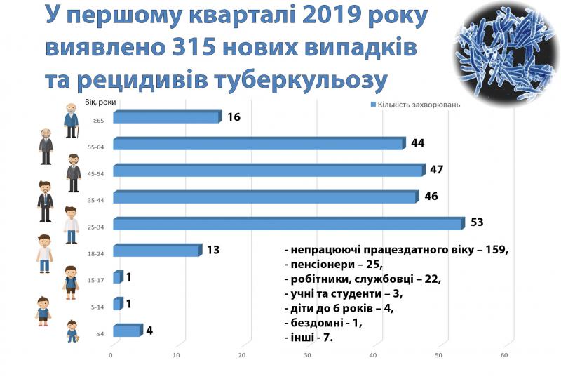 За перший квартал 2019 року в Закарпаттті зафіксовано 315 випадків туберкульозу, інформує прес-центр ОЦЗ в Закарпатській області.