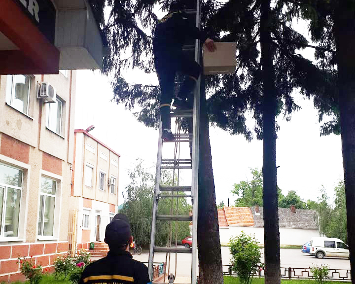 Учора, 27 травня, о 15:00 до закарпатських рятувальників звернулись мешканці м. Хуст за допомогою. Стурбовані клієнти місцевого кафе-бару, що на вул. А. Волошина, просили бійців ДСНС врятувати маленьке пташеня, яке випало з гнізда.