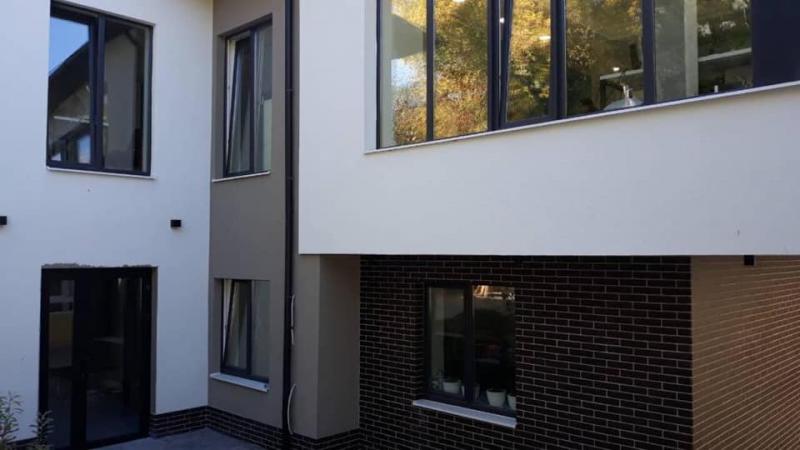 У процесі реконструкції ми вирішили змінити колір. На мою думку, так вийшло краще, відтінок на якому ми зупинились більше відповідає сучасним трендам в дизайні фасадів.