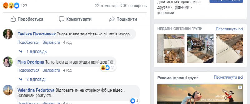 Відеозапис, на якому чітко видно, як по випічці в супермаркеті повзають таргани, виставила Katerina Mikita в групі "Не рекомендую" у соціальній мережі Фейсбук.