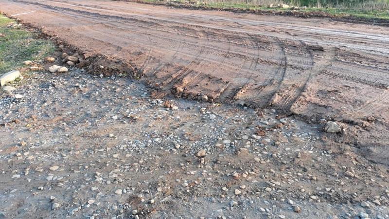 Підрядник ще минулої п'ятниці обіцяв людям на вулиці завезти поверх глини відсів — але в неділю вночі забрав техніку і його як вітром здуло.