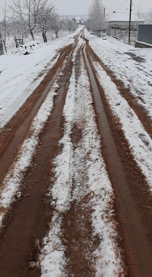 Ось фото "дороги", зроблені в неділю до снігу і те, як вона виглядає зараз. Ну і репост вітається", – пише Тетяна Когутич.
