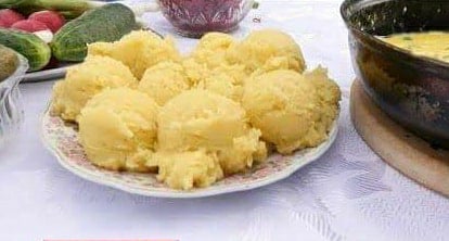 На 4 порції: 500 г картоплі, 1 склянка кукурудзяного борошна (крупи), 80 г овечої бринзи, 50 г вершкового масла, сіль за смаком