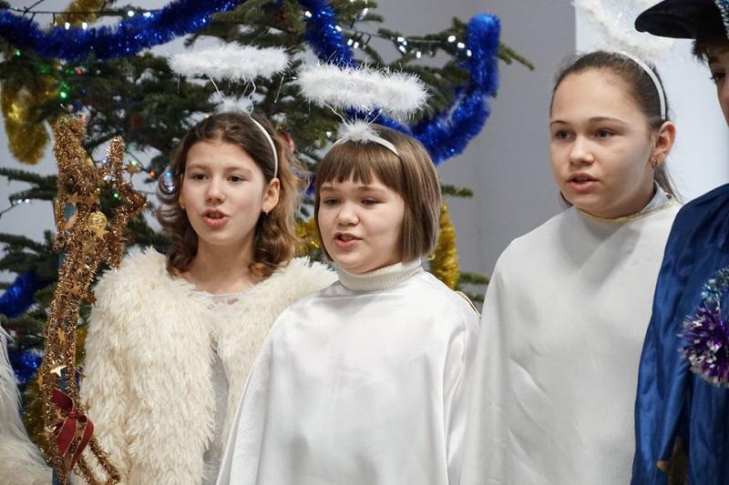 Колядки, щедрування дітей зворушили усіх, додали святкового настрою. Юним колядникам подякували за виступ і вручили солодкі подарунки, зараз же вони готуються до участі у виступах вертепів, які почнуться о 14.00 на площі Театральній.