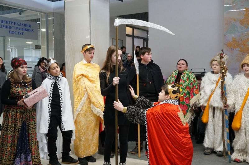 Привітати працівників міськради, відвідувачів Центру надання адміністративних послуг із різдвяними святами прийшли учні НВК «Гармонія».