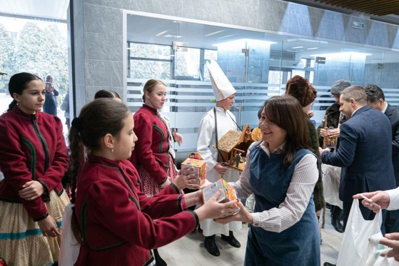 Відвідувачі муніципалітету, насамперед ЦНАПу та працівники міськради переглянули яскраве дійство, в.о. міського голови, заступник Ужгородського міського голови Ігор Фартушок подякував гостям, побажав їм здоров’я, успіхів, щастя і вручив солодкі подарунки.