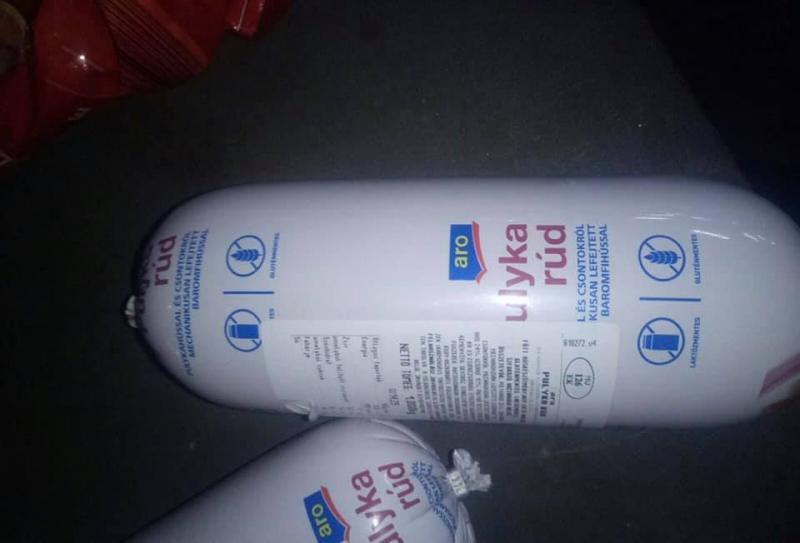 В ході митного контролю митники виявили не заявлені під час усного опитування товари іноземного виробництва, а саме: 303 кг ковбасних виробів, варених, розфасованих в упаковки виробника масою по 1 кг кожна, торговельної марки «ARO», типу «PULYKA RUD» країна виробництва – Угорщина. Ковбаса знаходилась в багажному відсіку автомобіля.