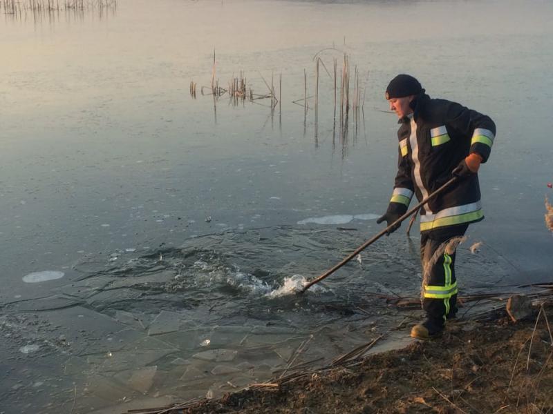 Про це Службу порятунку сповістили місцеві рибалки. Через похолодання водойма замерзла і птахи втратили можливість плавати на ній.