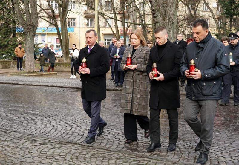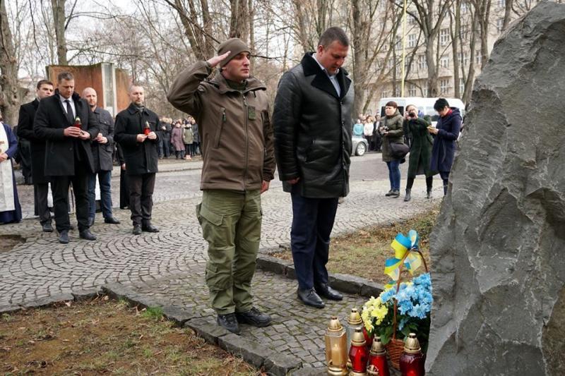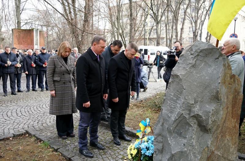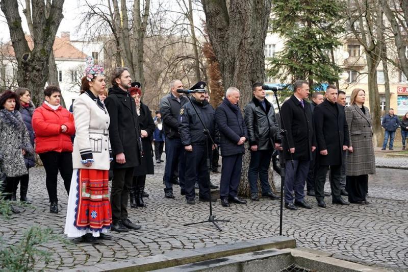 Лампадки до пам’ятного знаку борцям за свободу і незалежність України, що поблизу ректорату УжНУ, поклали голова Закарпатської обласної ради Михайло Рівіс, заступники голови Закарпатської ОДА Ольга Травіна та Ігор Шинкарюк, міський голова Ужгорода Богдан Андріїв, службовці, дипломати, громадськість.