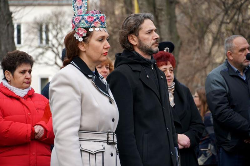 Пам'ять Героїв Небесної Сотні вшанували хвилиною мовчання, духовий оркестр Закарпатської обласної філармонії виконав Державний Гімн України, солістка Заслуженого академічного Закарпатського народного хору, заслужена артистка України Яна Садварій заспівала пісню "Пливе кача..."