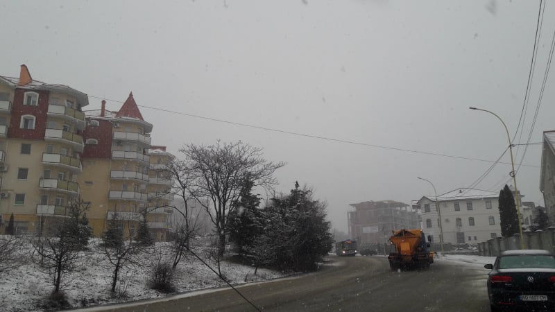 Сніг в Ужгороді: дороги посипали протиожеледною сумішшю