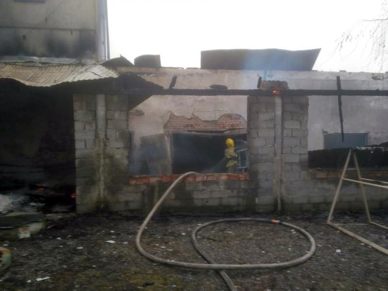 Полум’я знищило дах підсобного приміщення на площі 120 кв. м, а також вікна, двері та матеріали для виготовлення меблів. Наразі правоохоронні органи працюють над встановленням причини виникнення пожежі.