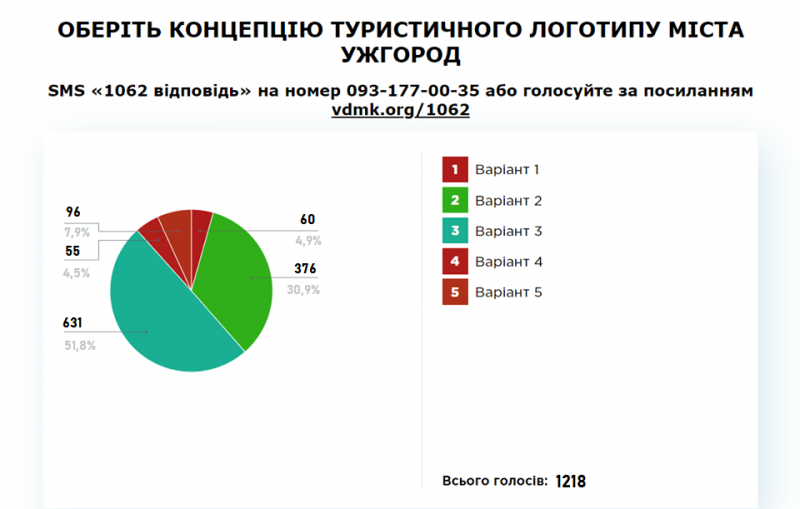 Як бачимо, найбільшу підтримку отримали варіанти №2 і №3, результати публічної консультації стануть основою для обрання концепції туристичного логотипу Ужгорода.