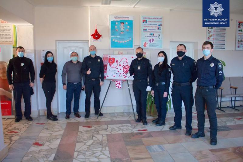 Закарпатські патрульні долучилися до донорства у Закарпатській обласній станції переливання крові. Наразі тут виникла гостра потреба у здачі крові, особливо, рідкісних груп (зокрема, першої, другої-мінус, третьої-плюс, четвертої).