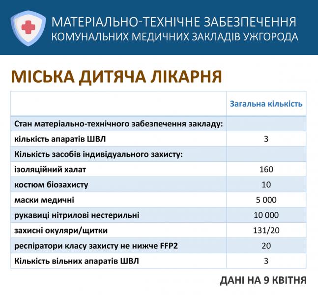 Матеріально-технічне забезпечення комунальних медзакладів Ужгорода станом на сьогодні