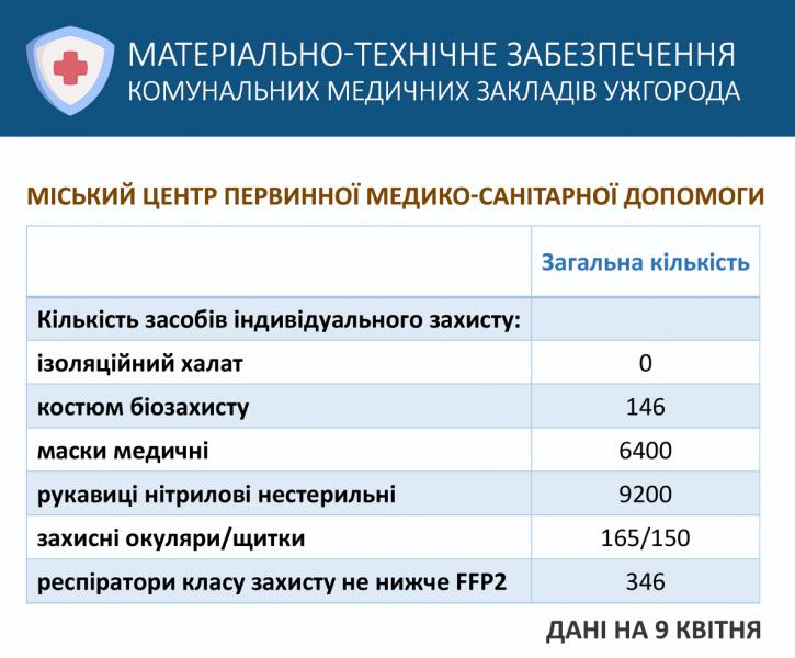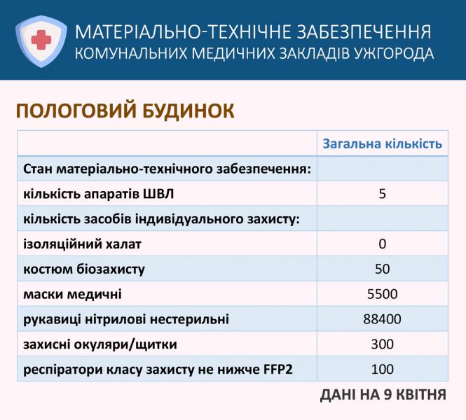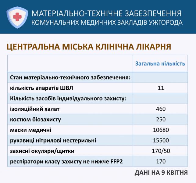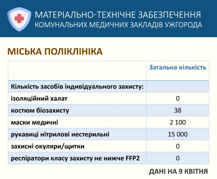 Інформація управління охорони здоров'я Ужгородської міської ради про матеріально-технічне забезпечення комунальних медичних закладів міста.