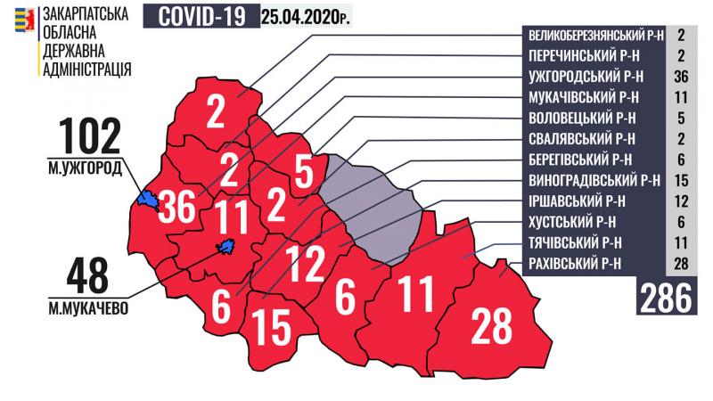 Ситуація щодо COVID-19 на Закарпатті станом на 9 годину 25 квітня.
