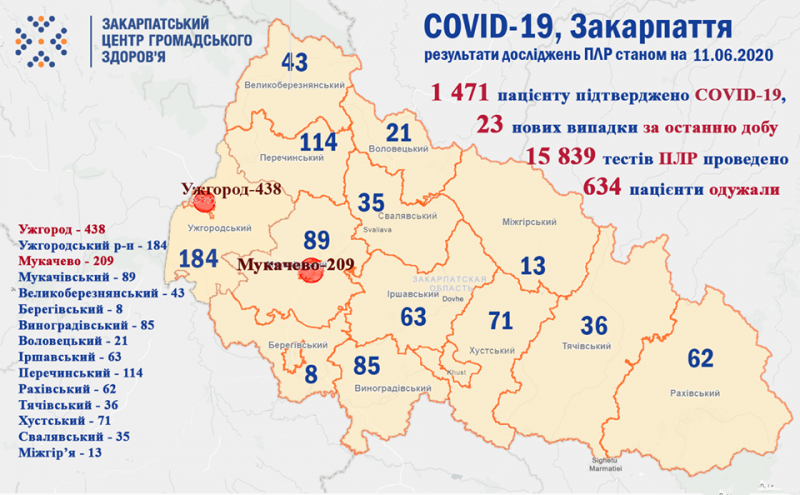 - 634 закарпатці, у яких було підтверджено коронавірус методом ПЛР, одужали;