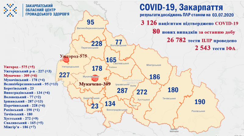 - загалом 3 126 закарпатцям встановлено діагноз COVID-19, із яких – 477 медики та 176 - діти