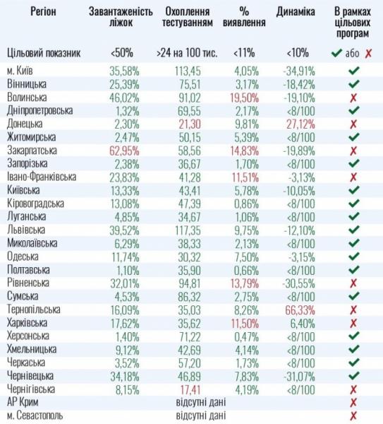 Перехід областей до наступного етапу карантину, що передбачає послаблення карантинних обмежень, можливий за умови відповідності епідситуації в області 4 критеріям: завантаженість ліжок; середня кількість тестувань – не менше ніж 24 на 100 000 населення за 7 днів; коефіцієнт виявлення випадків інфікування COVID-19 – більше 11%;? динаміка зростання випадків – більше 10% (останній показник застосовується у разі реєстрації більше 8 випадків на 100 000 населення за 7 днів).