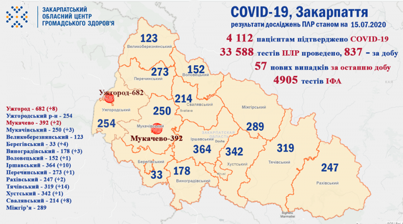 - загалом 4 112 закарпатцям встановлено діагноз COVID-19, із яких – 564 медики та 220 – діти