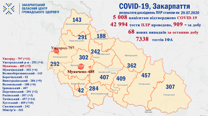 - загалом, 5 008 закарпатцям встановлено діагноз COVID-19, із яких – 667 медики та 268 - діти;