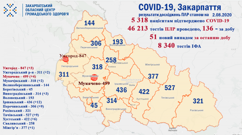 - загалом, 5 318 закарпатцям встановлено діагноз COVID-19, із яких – 692 медики та 283 - діти;