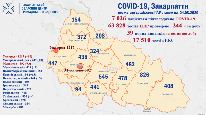 За добу на Закарпатті +39 нових випадків захворювання на COVID-19