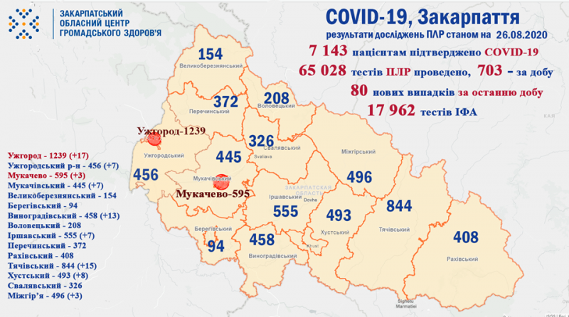 Закарпаття: за добу у 80 пацієнтів підтверджено коронавірус методом ПЛР