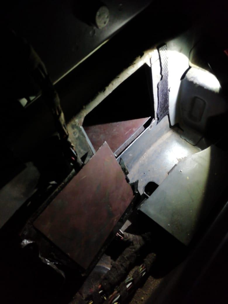 - Доступ до виявлених тютюнових виробів став можливим після демонтажу передніх сидінь автомобіля шляхом відкручування чотирьох болтів на кожному; пластмасових декоративних накладок на стійках та порогах авто, які кріпились на пластмасових кліпсах; ковроліну з підлоги; пластмасових труб пічки; металевої пластини квадратної форми розміром 10х10см, приклеєної бітумним матеріалом до металевого порогу та відсовуванням ще однієї металевої пластини в бік, - розповідають інспектори-оперативники управління забезпечення та протидії митним правопорушенням Закарпатської митниці Держмитслужби.