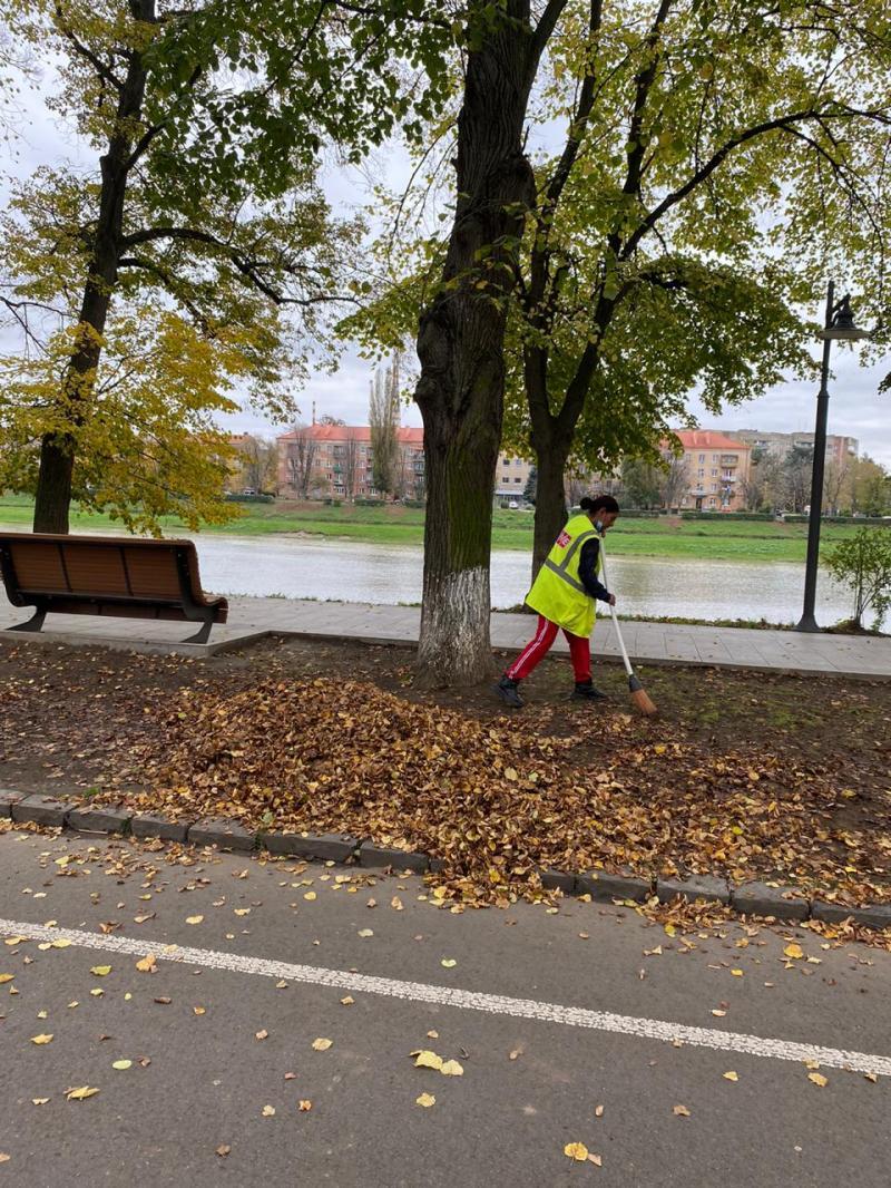 Суботнє прибирання: більше сотні працівників комунальних служб сьогодні, як і кожного дня, прибирають вулиці, сквери, набережні та площі Ужгорода, у тому числі від опалого листя.
