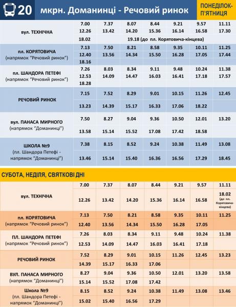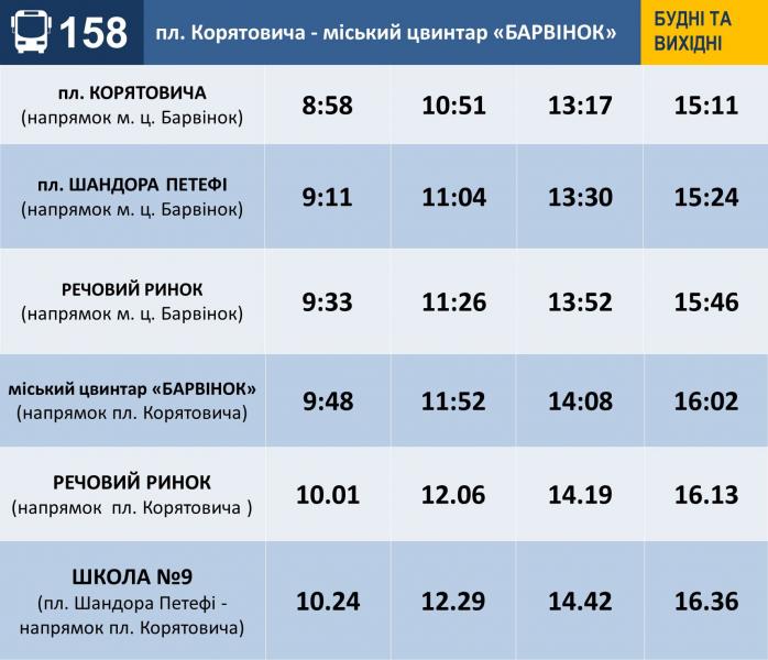 КП "Ужгородський муніципальний транспорт" повідомляє про оновлені графіки руху на міських автобусних маршрутах №№20 та 158.