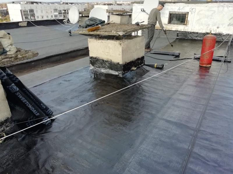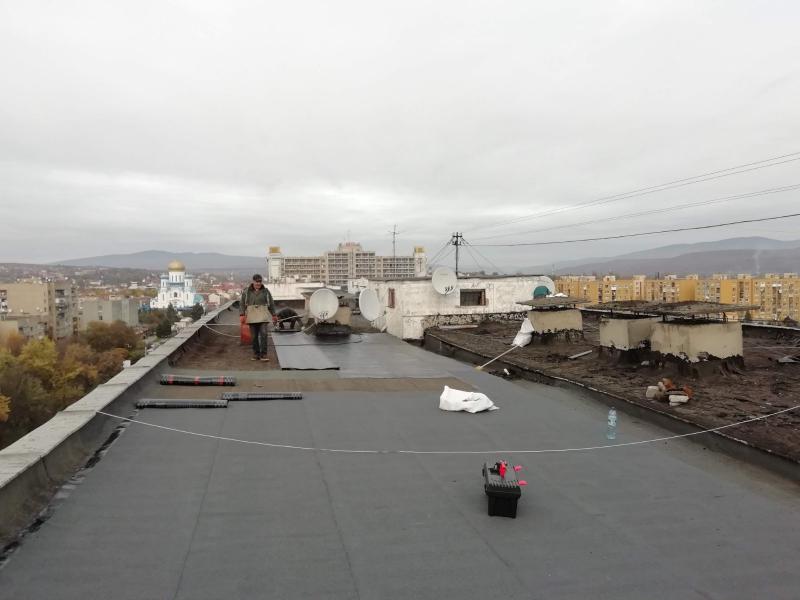 Ремонт покрівлі багатоповерхового панельного будинку на вул. Минайській,9 (ОСББ «Минайська,7,9») роблять в Ужгороді.