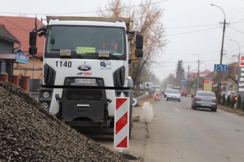 На вулиці Капушанській на ділянці від перехрестя з вулицею Михайла Грушевського і до проспекту Свободи продовжують ремонтні роботи.