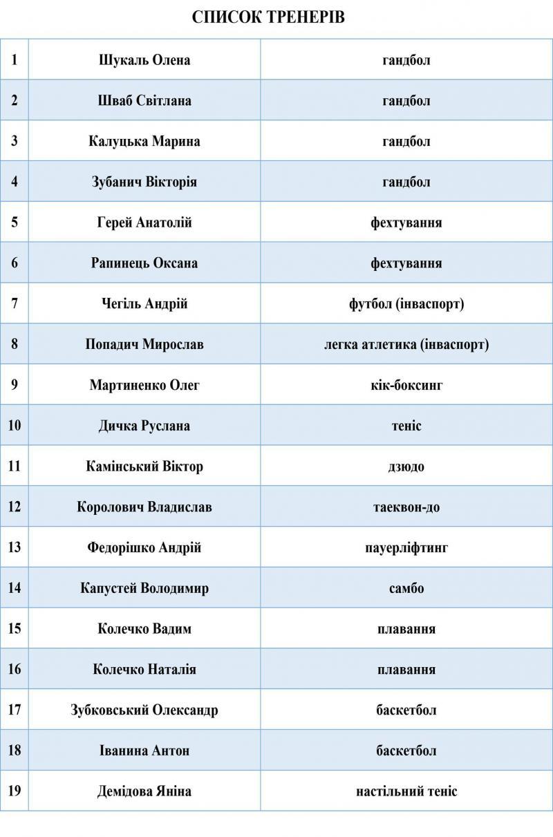 Ужгородські спортсмени та тренери отримають грошові винагороди (СПИСОК)