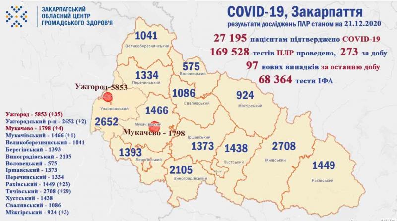 загалом, 27 195 закарпатцям встановлено діагноз COVID-19, із якиї 2120 медики та 1430 - діти;