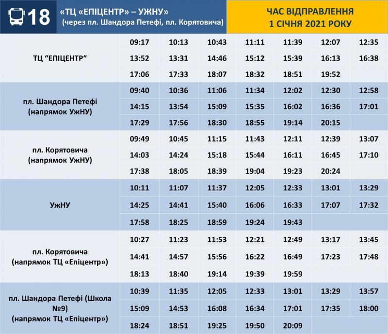 На фото – розклад руху комунального транспорту. За посиланням https://rada-uzhgorod.gov.ua/.../%D0%A0%D0%BE%D0%B7%D0%BA... – решта маршрутів.