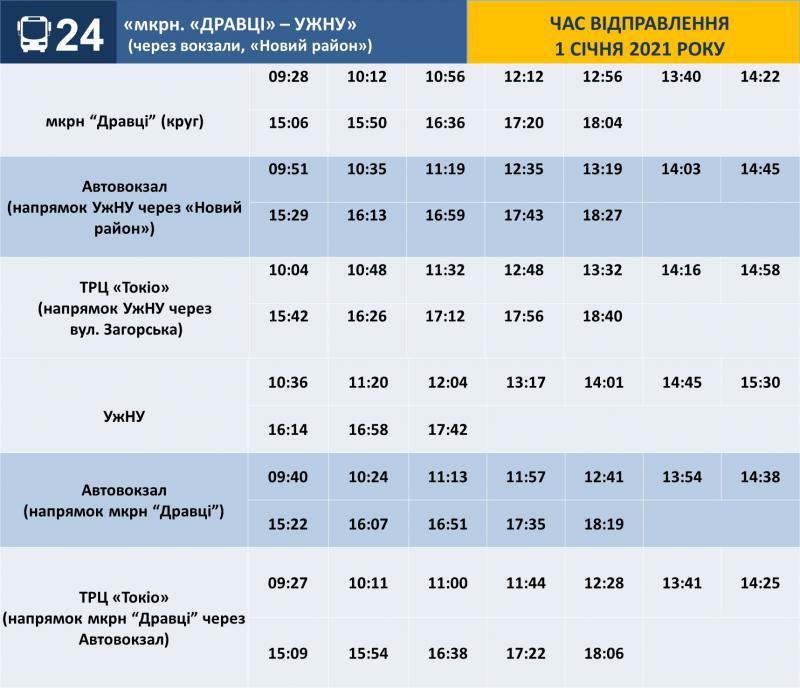 Розклад руху міських автобусних маршрутів в Ужгороді на новорічні свята
