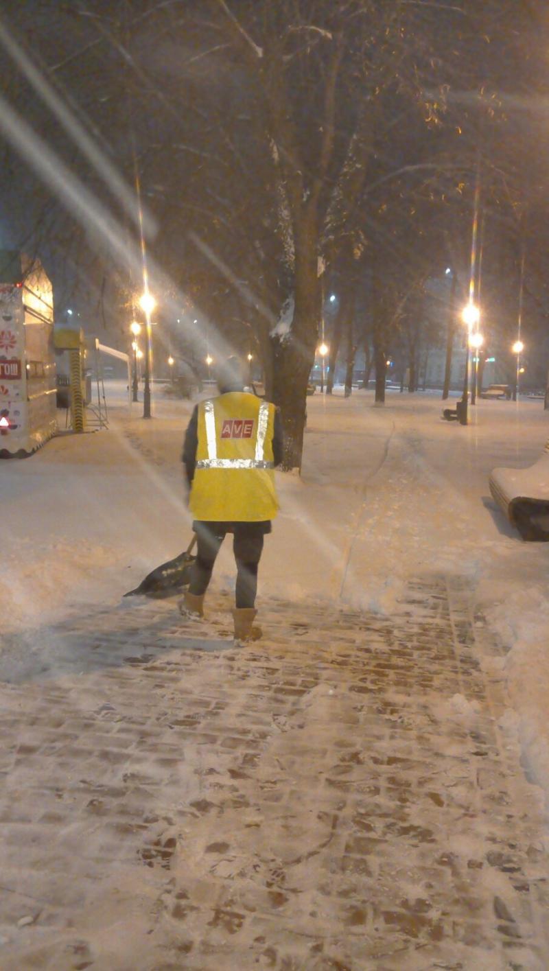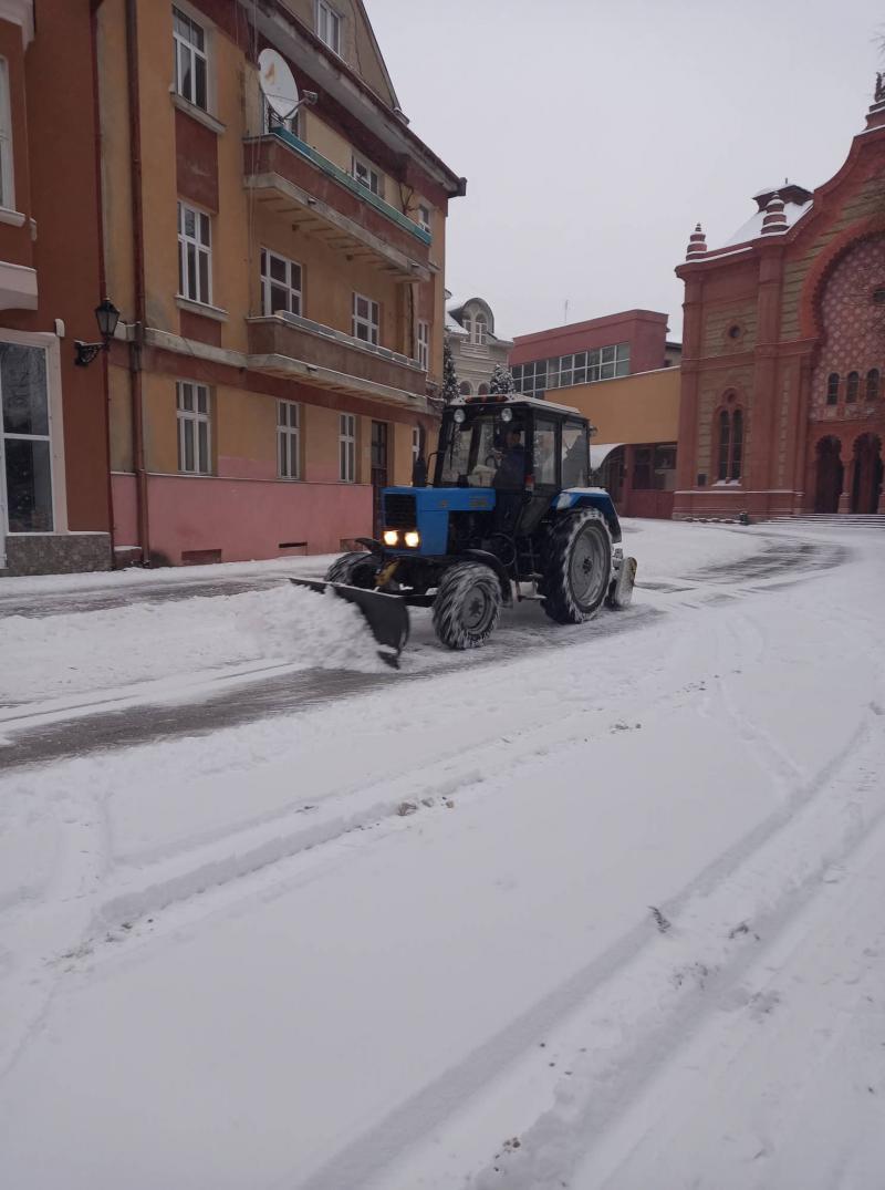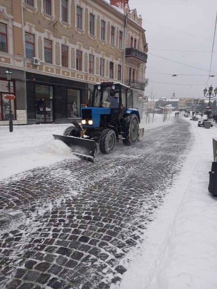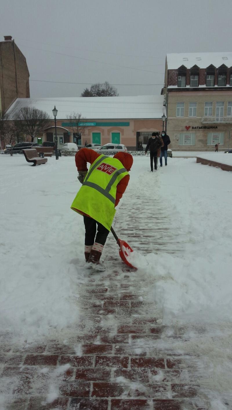 Комунальники розчищають сніг на тротуарах та вулицях Ужгорода