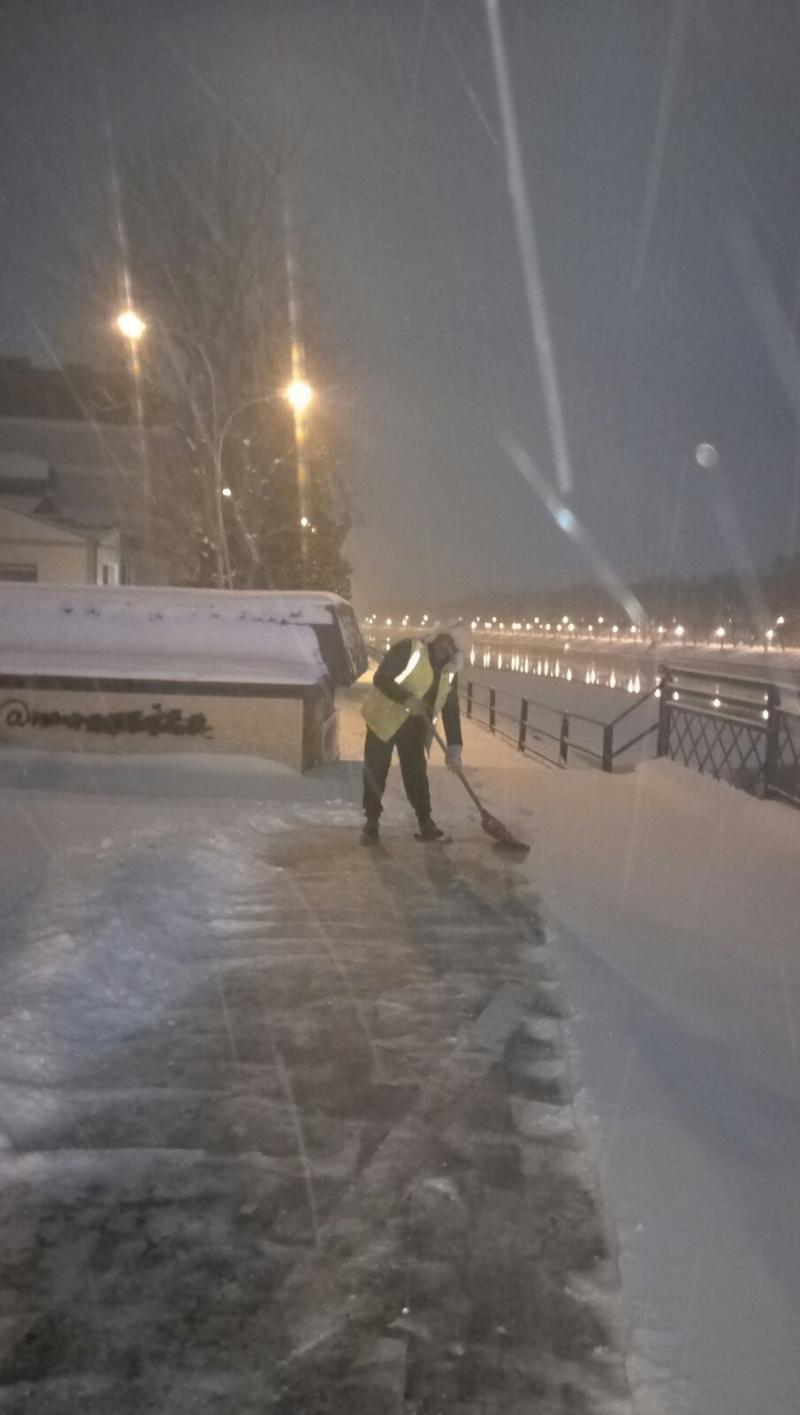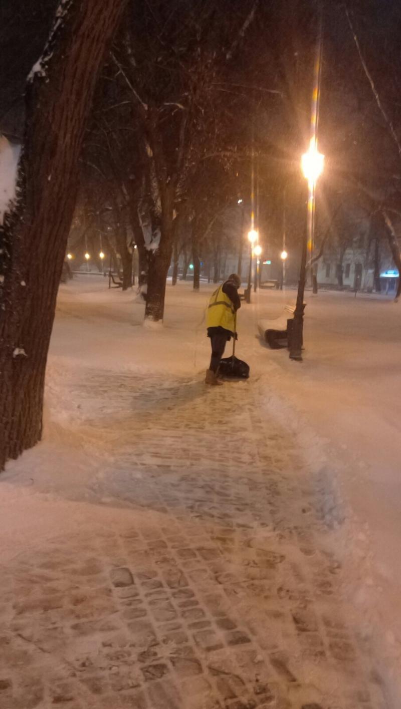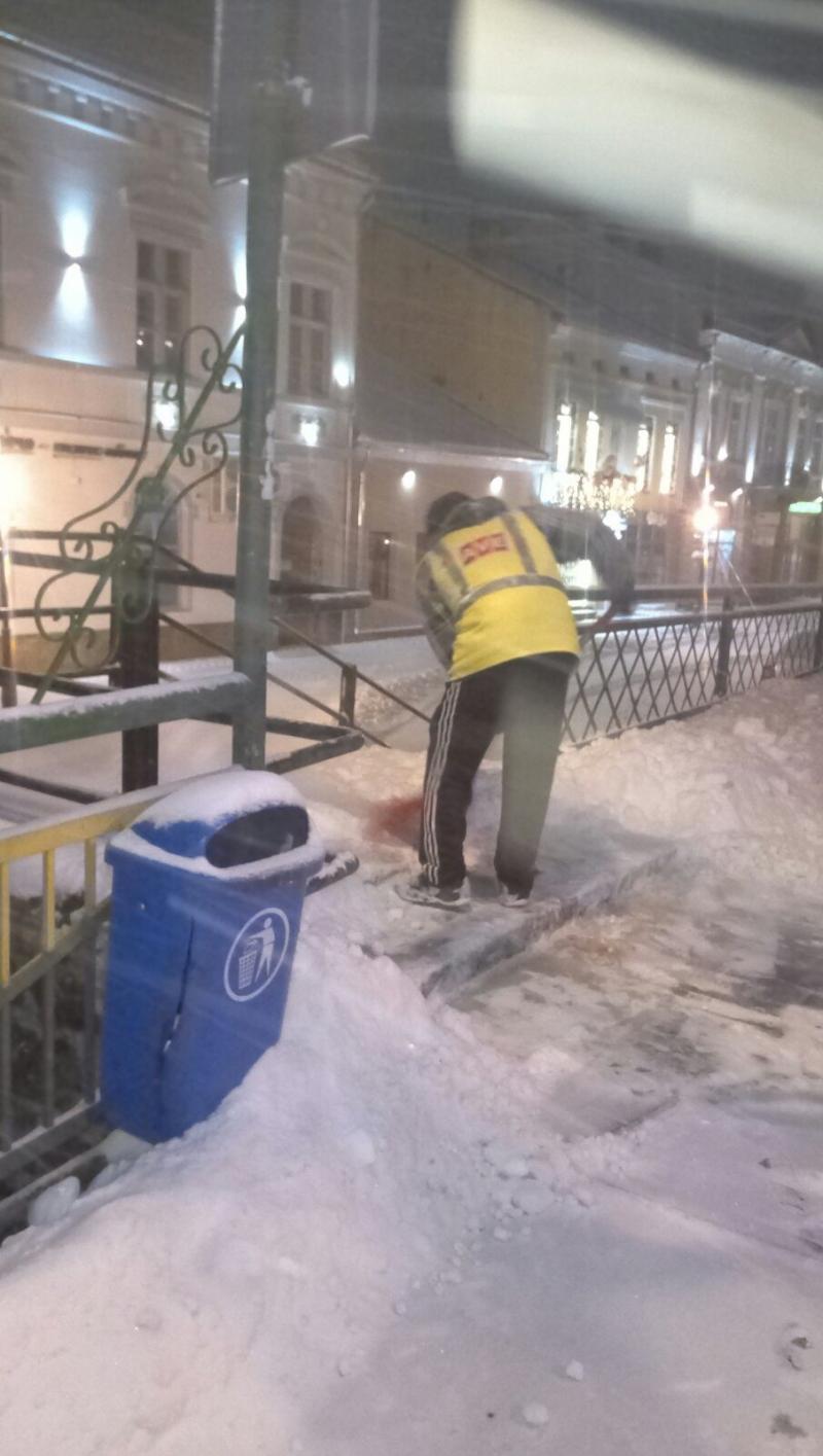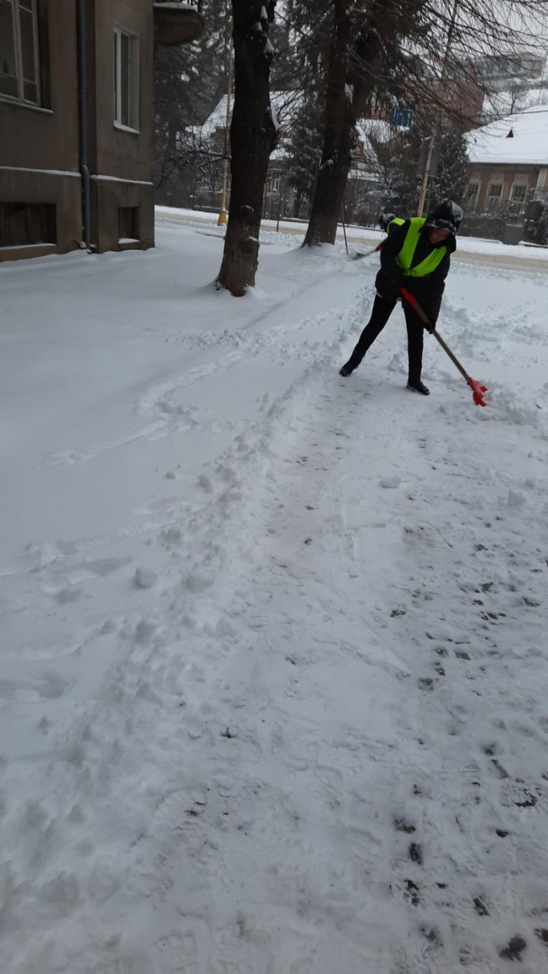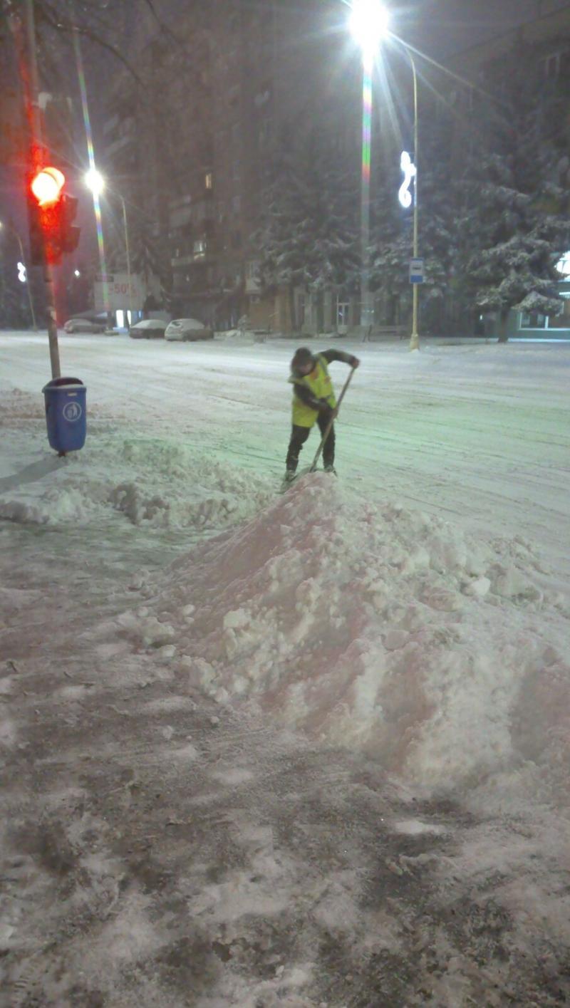 Працівники комунальних служб в Ужгороді розчищають сніг: уночі вулиці обробили протиожеледною сумішшю, потім розпочали прибирання центральних магістралей, підйомів, транспортних кругів за допомогою спецтехніки. Двірники розчищають автобусні зупинки, пішохідні переходи, тротуари.