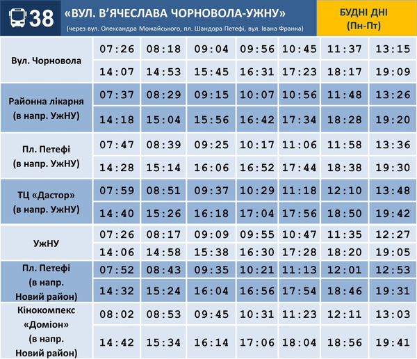 Відзавтра, 27 січня, в Ужгороді почне курсувати маршрут №38