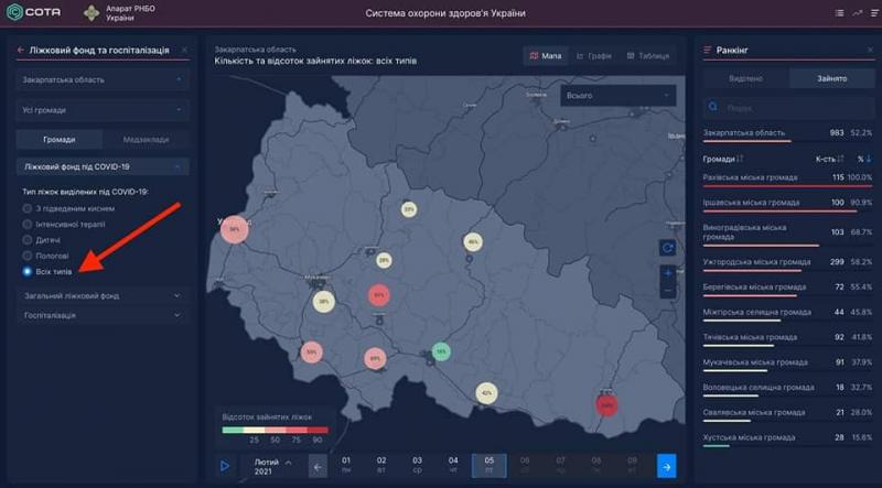 Завантаженість ліжок, визначених для госпіталізації хворих на COVID-19, є понад 50%, що ПЕРЕВИЩУЄ ГРАНИЧНИЙ РІВЕНЬ.