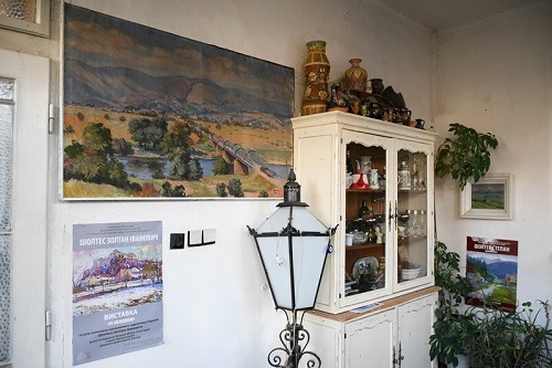 Справді, красивий будинок пасував рівню Золтана Шолтеса куди більше. Художник і його сім’я полюбили цей дім, тут бувало дуже багато відомих людей, тож розказати і показати в майбутньому музеї точно буде що. Зайшовши до будинку, відвідувач потрапить спершу до передпокою й одразу з порога порине у простір, наповнений мистецтвом. На одній стіні можна буде побачити величезний пейзаж з видами Перечинщини – ліси, старий, ще й досі не розібраний перечинський міст та обриси задимленого хімзаводу вдалині. Ця робота одна з найстаріших у домашній добірці художника, датується 1947 роком, коли Золтан Шолтес ще був священником і часто їздив із Ужгорода поїздом на роботу у мальовниче село Турицю. Неподалік цієї роботи можна побачити і найстарішу олійну, датовану ще 1925 роком, – вона зображує Мукачівський замок.Є у передпокої афіші ювілейних виставок, бюст Шолтеса, виконаний його колегою Богданом Коржем, гарний кований ліхтар, куплений Золтаном Шолтесом у Виноградові, старовинний буфет.